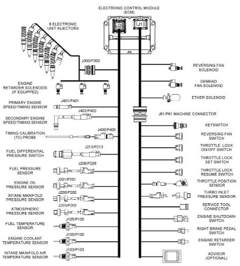 卡特彼勒C15和C18發(fā)動機傳感器位置和電氣接頭配件與控制線束顏色標識知識