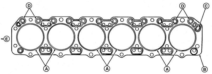 5.觀察拆下的JOHN DEERE六缸發(fā)動(dòng)機(jī)缸蓋墊片的表面。