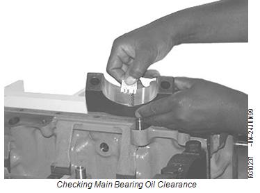 檢查約翰迪爾John Deere柴油機(jī)主軸承油隙塑料間隙規(guī)的使用 將決定軸承到軸頸的磨損(油隙),但不會(huì)決定軸承或軸頸表面的狀況。