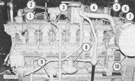 (1)化油器和燃?xì)鈮毫φ{(diào)節(jié)器間的平衡管路(2)化油器(3)通向化油器的燃?xì)庖牍苈罚?/span>4)后冷卻機(jī)(5)排氣旁通閥(6)排氣肘管(7)渦輪增壓器(8)燃?xì)鈮毫φ{(diào)節(jié)器(9)燃?xì)怅P(guān)閉閥(10)空氣過(guò)濾器