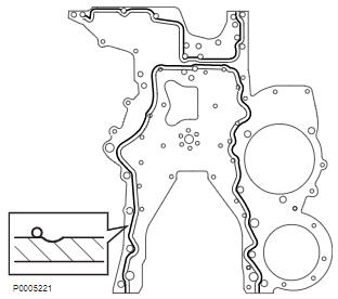 1 安裝前最多20 分鐘內(nèi),在正時(shí)盤上的槽外側(cè)涂抹一層 2 mm (0.08")厚的密封膠。
