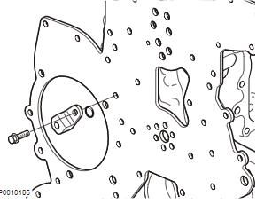 16 從沃爾沃發(fā)動(dòng)機(jī)飛輪殼上拆下曲軸密封件。清潔飛輪殼的接觸表面。檢查并確認(rèn)定位套筒安裝到位。