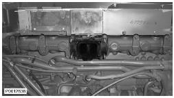 20 僅適用于 D13B-A/C/G/H/K/L,D13C2-A,D13C4-A(雙渦輪增壓器)安裝隔熱罩,但不要完全緊固螺栓。檢查 Y 形管是否固定到固定器內(nèi)。注意 隔熱罩可能需要在某個(gè)方向上移動(dòng)以固定 Y形管螺栓。因此,隔熱罩螺栓在安裝 Y 形管時(shí)才緊固。圖示為帶有雙渦輪增壓器的發(fā)動(dòng)機(jī)。