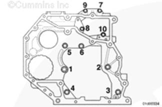 注: 一些發(fā)動(dòng)機(jī)裝備一個(gè)附加螺栓(圖中未顯示)。按順序最后擰緊此螺栓。