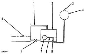 (1)前倉(cāng)排氣孔 (2)調(diào)節(jié)器 (3)排氣孔 (4)油源 (5)發(fā)動(dòng)機(jī)的油盤(pán) (6)閥門(mén) (7)漂浮物 (8)旋軸 (9)閥門(mén)座