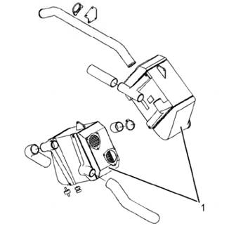 Perkins4016柴油發(fā)動機后冶器(1)位于發(fā)動機每側(cè)的飛輪端。每個渦輪增壓器的增壓空氣經(jīng)過空氣管進入冶卻器。空氣流過管狀基體并由管內(nèi)流動的循環(huán)水冶卻。冶卻后的空氣通過進氣歧管進入發(fā)動機。