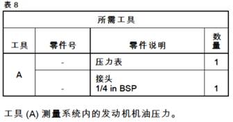 4請(qǐng)參閱表9以確定發(fā)動(dòng)機(jī)機(jī)油壓力是否可以接受。