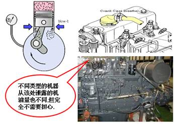 為了使康明斯發(fā)動機(jī)能夠連續(xù)的輸出功率,曲軸箱必須和大氣相同,因此必須有一個(gè)管道來連接曲軸箱和大氣,俗稱”下排氣管”,通過活塞環(huán)泄露的少量高溫燃?xì)馔ㄟ^”下排氣管”導(dǎo)入大氣當(dāng)中,同時(shí)將由于曲軸高速旋轉(zhuǎn)時(shí)激起的機(jī)油油霧排到大氣當(dāng)中,致使有少量的機(jī)油消耗.