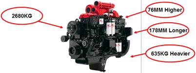直列6缸結(jié)構(gòu)跟現(xiàn)在的康明斯6缸機(jī)相比提供了更高的動(dòng)力輸出。