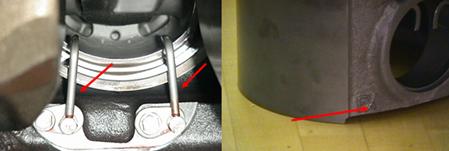 康明斯Cummins QSK23發(fā)動(dòng)機(jī)每缸兩個(gè)活塞冷卻噴嘴為冷卻活塞頭部及潤(rùn)滑活塞銷提供充足的機(jī)油。要保證正確的活塞冷卻,活塞必須要正確安裝。安裝時(shí),活塞標(biāo)有 EX 的一側(cè)朝向發(fā)動(dòng)機(jī)右側(cè)/排氣側(cè)。