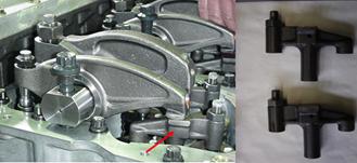 帶導(dǎo)向、可調(diào)整的氣門過橋?qū)崿F(xiàn)一個(gè)搖臂驅(qū)動(dòng)兩個(gè)氣門。