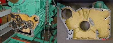 康明斯Cummins QSK23發(fā)動(dòng)機(jī)前齒輪室蓋與缸體之間用密封膠密封。沒有密封墊。