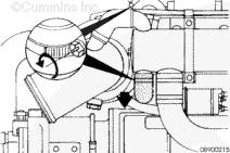 所示為典型的軟管連接,沒有顯示中冷器冷卻液軟管和排氣彎管支架。從熱交換器上斷開海水進(jìn)口和出口接頭。