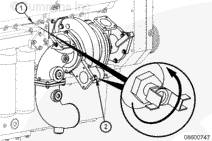 水泵包含一個(gè)油封和一個(gè)水封。改進(jìn)的水封于 1997 年 10 月投入生產(chǎn)(首臺(tái)發(fā)動(dòng)機(jī)生產(chǎn)序號(hào) 33139138)。這些密封件之間的空腔有通氣孔。如果密封件泄漏,通氣孔可防止?jié)櫥瑒┗蚶鋮s液污染。從通氣孔泄漏的機(jī)油和冷卻液不會(huì)影響泵的工作。在每次計(jì)劃的維護(hù)保養(yǎng)間隔,檢查通氣孔是否阻塞。建議的維護(hù)保養(yǎng)間隔是 250 小時(shí)或 6 個(gè)月。