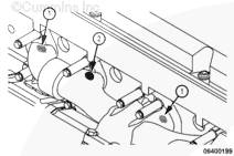 從位于發(fā)動(dòng)機(jī)左排的回油歧管塊上拆下噴油器回油軟管。僅拆下回油歧管缸體端 (1) 的軟管。參考第 6 節(jié)中的步驟 006-013。