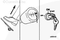 注: 對(duì)于配備有 Prelub 系統(tǒng)的發(fā)動(dòng)機(jī),將鍵固定在”START”(起動(dòng))位置以增大機(jī)油壓力。