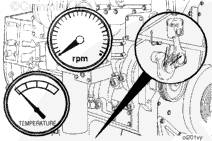 如果配備機(jī)油壓力表和冷卻液溫度表,要經(jīng)常查看它們的讀數(shù)。請(qǐng)參考維護(hù)保養(yǎng)技術(shù)規(guī)范(第 V 節(jié))中潤(rùn)滑系統(tǒng)技術(shù)規(guī)范和冷卻液系統(tǒng)技術(shù)規(guī)范中推薦的工作壓力和溫度。如果壓力或溫度不符合技術(shù)規(guī)范,關(guān)閉發(fā)動(dòng)機(jī)。發(fā)動(dòng)機(jī)運(yùn)轉(zhuǎn)過程中,如果發(fā)動(dòng)機(jī)冷卻液溫度持續(xù)高于或低于維護(hù)保養(yǎng)技術(shù)規(guī)范(第 V 節(jié))中給出的技術(shù)規(guī)范值,可能會(huì)損壞發(fā)動(dòng)機(jī)。