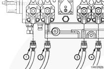 從發(fā)動(dòng)機(jī)線束上拆下全部 P 形夾和線束固定支架,然后拆卸線束。使用一把 4 mm [5/32 in] 六角扳手從 ECM 上斷開發(fā)動(dòng)機(jī)線束 Deutsch 接頭。