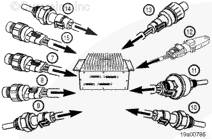 注: 這是一個可選裝的傳感器,不是所有發(fā)動機(jī)上都裝有此傳感器。如果沒有使用冷卻液液位傳感器,則安裝一個短接插頭。