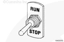 ”一般報警”繼電器輸出會關(guān)閉發(fā)動機(jī)并且不允許其運(yùn)行,直到反復(fù)轉(zhuǎn)動” STOP/RUN ”(停止/運(yùn)行)開關(guān)。