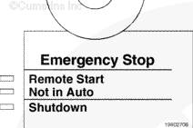 遠程起動或停機按鈕用于從遠程位置的發(fā)電機組起動和停機。當發(fā)電機組工作時,此按鈕顯示為停機 (STOP);當發(fā)電機組沒有工作時,此按鈕顯示為起動 (START)。