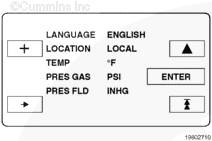 在任何時候,只要同時按下顯示窗口底部兩側(cè)的2個按鈕(一邊一個),就可以改變所顯示的語言和計量單位。會彈出語言/計量單位子菜單。要將所做更改保存在一個字段中,按下 ENTER(輸入)按鈕。