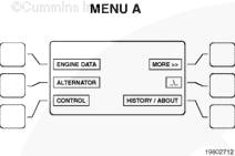 顯示菜單有 6 個快速按鈕 - 圖形顯示窗的兩邊各有三個 - 用于系統(tǒng)控制菜單導航和調(diào)整發(fā)電機組參數(shù)。