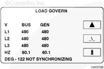 當控制系統(tǒng)使發(fā)電機組達到額定轉(zhuǎn)速和電壓并且已經(jīng)感應(yīng)到母線電壓可用時,啟用控制系統(tǒng)的同步功能。控制系統(tǒng)自動調(diào)整發(fā)電機組轉(zhuǎn)速和電壓,以匹配母線頻率和電壓。