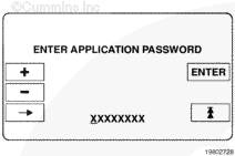 按下正號(+)和負號(-)按鈕選擇密碼的第一個字符。輸入應(yīng)用程序密碼設(shè)置子菜單,或輸入用戶密碼調(diào)整子菜單。