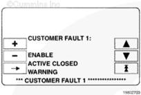 +/- 按鈕將允許您在關(guān)閉/打開、啟用/停用和停機/警告之間進行切換。您也可以使用此按鈕選擇適當?shù)淖址?,從而更改故障信息“客戶故障編號”?/P>