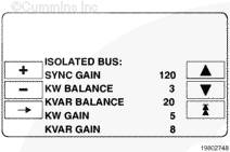 kW 平衡:此功能調(diào)整發(fā)電機組的 kW 負載分配功能。在調(diào)整此項數(shù)值前,應(yīng)進行所有發(fā)電機組的標定。如果系統(tǒng)上的總負載沒有按比例分配,可以利用 kW 平衡調(diào)整發(fā)電機組,達到更精確的負載分配。增大 kW 平衡的數(shù)值將使發(fā)電機組降低本臺發(fā)電機組占總 kW 負載的百分比。