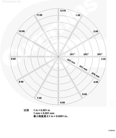 4. 時鐘位置:時鐘位置是指軸頸最高千分表總讀數(shù)的位置。即從曲軸前端觀察時,比較其與 1 號曲軸銷的角度關(guān)系。在示例中,曲軸銷處在 8 點鐘位置。這就是被測軸頸的時鐘位置。
