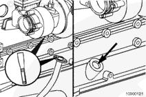 拆下渦輪增壓器回油管上的螺釘。將回油管拉出回油管凸臺。