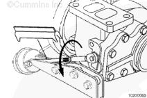 將控制桿防松螺母擰緊到末端連桿上。切斷扎條,并除去扎條和墊片。廢棄扎條。繼續(xù)按同一方向轉動防松螺母,并擰緊在末端連桿上。