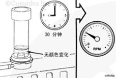 如果在 30 分鐘的測(cè)試期間,測(cè)試液沒(méi)有從藍(lán)色變?yōu)辄S色,讓康明斯ISB3.9發(fā)動(dòng)機(jī)回到低怠速。