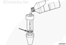 注: 在測(cè)試?yán)鋮s液中是否有空氣之前,起動(dòng)康明斯ISB3.9發(fā)動(dòng)機(jī)并讓其運(yùn)轉(zhuǎn) 5 分鐘,這會(huì)使所有滯留空氣從冷卻系統(tǒng)排出。
