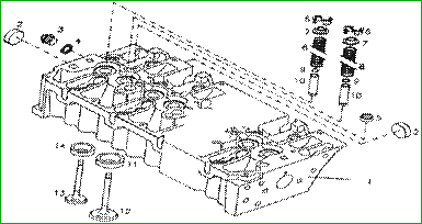 1.缸蓋 2.水套堵 3.螺塞 4.密封墊 5搖臂堵頭 6.氣門(mén)彈簧鎖片 7.彈簧座 8.氣門(mén)彈簧 9.o型圈 10.氣門(mén)導(dǎo)管 11.進(jìn)氣門(mén)座 12.進(jìn)氣門(mén) 13.排氣門(mén) 14.排氣門(mén)座