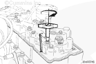 如果沒有正確規(guī)格的塞尺,以下方法可以用來代替塞尺方法。使用盤車工具(零件號 3824591)轉(zhuǎn)動曲軸,使燃油泵齒輪上的標記與齒輪室蓋上的上止點標記對齊。