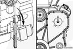 使用盤車工具(零件號 3824591)轉(zhuǎn)動曲軸,使燃油泵齒輪上的標記與齒輪室蓋上的上止點標記對齊。