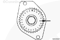 當(dāng)從齒輪端看壓縮機(jī)(壓縮機(jī)處于垂直位置)時(shí),轉(zhuǎn)動(dòng)齒輪使“l(fā)”正時(shí)標(biāo)記處在 3 點(diǎn)位置。Cummins® 單缸空氣壓縮機(jī)在殼體上的 3 點(diǎn)鐘位置有一個(gè)小片,可以幫助設(shè)定壓縮機(jī)的正時(shí)。一旦正時(shí)標(biāo)記處于 3 點(diǎn)的位置,這會(huì)將壓縮機(jī)設(shè)定為壓縮機(jī)壓縮沖程上止點(diǎn)前 60 度。