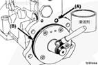 如果機油冷卻器蓋沒有凹痕,按所示順序擰緊螺栓。箭頭 (A) 指向凹痕的位置。
