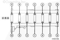 如圖所示,在每個(gè)康明斯ISX15 CM2250發(fā)動(dòng)機(jī)主軸承蓋上的 2 個(gè)主軸承蓋表面涂上一層 U 形 Loctite™ 518 螺紋密封膠。