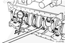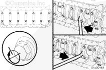 將康明斯ISX15 CM2250發(fā)動(dòng)機(jī)主軸承蓋上的兩個(gè)螺釘擰緊到 203 N•m [150 ft-lb]。
