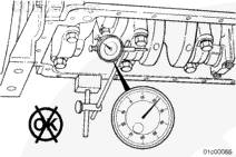 若要測(cè)量康明斯ISX15 CM2250發(fā)動(dòng)機(jī)曲軸的軸向間隙,應(yīng)在油底殼安裝法蘭上安裝千分表。