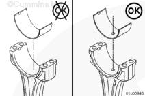 用手將康明斯ISX15 CM2250發(fā)動(dòng)機(jī)主軸承軸承裝到上鞍座。使軸承滑動(dòng)入位。安裝軸承時(shí)注意不要損壞曲軸軸頸。