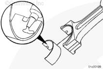注: 連桿必須能夠在曲軸軸頸上橫向移動(dòng)自如。如果連桿不能移動(dòng)自如,拆下連桿蓋,然后確保軸瓦的尺寸正確。檢查曲軸和軸瓦上有無(wú)污垢或損壞。