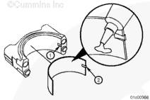 將康明斯ISX15 CM2250發(fā)動(dòng)機(jī)軸瓦安裝在連桿蓋中,軸承的定位舌(2)座入蓋上的槽(1)中。