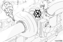 注: 在安裝新活塞環(huán)及舊缸套時,在開始工作的前幾個小時內(nèi)可能會經(jīng)歷竄氣量超過平均值的情況。在發(fā)動機(jī)工作幾個小時后,如果依然發(fā)現(xiàn)竄氣過量,請參考 TS 節(jié)內(nèi)的“曲軸箱氣體(竄氣)過量”故障診斷癥狀樹。
