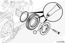 注: 此時(shí)氣門凸輪軸齒輪仍是松馳安裝,以便將可調(diào)整惰輪正確定位。不要座入齒輪。