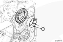 安裝康明斯ISX15 CM2250發(fā)動(dòng)機(jī)止推軸承、軸和燃油泵惰輪。安裝軸時(shí),必須使對(duì)齊標(biāo)記 (1)(壓印在齒輪座圈上)朝向下剪式惰輪中間。
